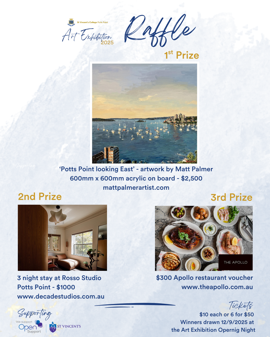 Enter in the St Vincents Art Exhibition Raffle supporting our charity, Open Support.